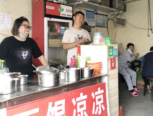 现在的生活,平淡、安静,没有风浪。不多时,孙国芳回到店里,她个子不高,留着一头短发,穿着黑T恤小白鞋。铁锅里,热腾腾的气往上飘,她一直笑着听记者和丈夫聊天。老顾客们也说,“老板娘总是笑脸迎人。”