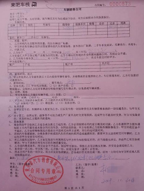 近日,济南市民柏先生联系记者称,他于2019年11月30日在济南高新区一车行购买的汽车,至今仍无法提车,且多次要求退款无果。对此,汽车销售方称,因疫情原因提车手续推迟办理,车款在上家公司。为此,双方签订退款承诺书,约定退款时间及赔偿金。目前,退款还在走流程中。文/图 山东商报·速豹新闻记者 刘瑾阳