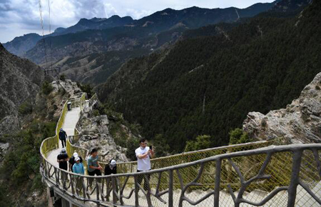 △市民在贺兰山国家森林公园(新华社记者冯开华 摄)