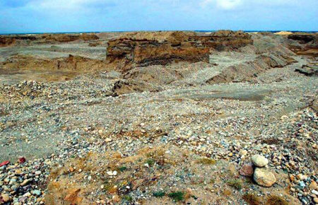 △曾经贺兰山非开采区内被挖得千疮百孔的土地(新华社记者王广壮 摄)