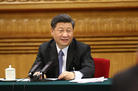 △习近平参加内蒙古代表团审议(新华社记者鞠鹏 摄)