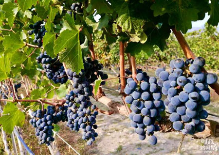 △位于贺兰山东麓的葡萄种植园。(总台央视记者杨波拍摄)