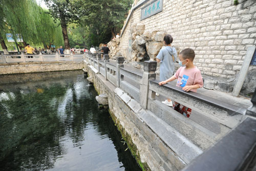 商报济南消息 昨日,记者在黑虎泉现场发现,黑虎泉三个兽头仅中间和东侧兽头在喷水,西侧兽首相较于前日的涓涓细流,已经几乎没有泉水流出。周边有市民感叹道:“黑虎泉怕是撑不住了。”黑虎泉真的陷入停喷危机了吗?记者随即联系到济南城乡水务局相关负责人唐瑞钦,据唐瑞钦表示,黑虎泉出现的是间歇性断流现象,并非彻底停喷。