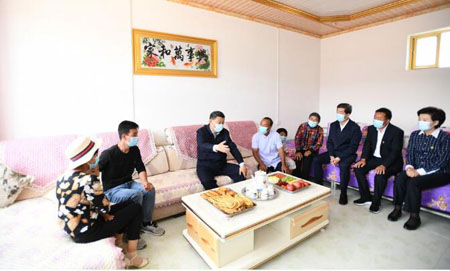 2020年6月8日,习近平在宁夏吴忠市红寺堡镇弘德村了解当地推进脱贫攻坚情况。新华社记者 谢环驰摄