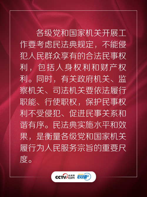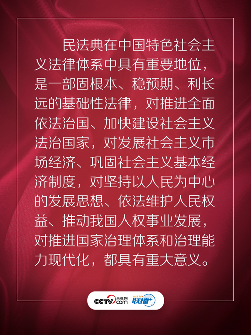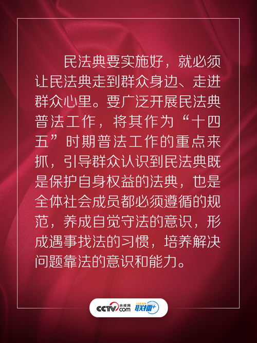 联播+“实施好民法典是坚持以人民为中心、保障人民权益实现和发展的必然要求。”