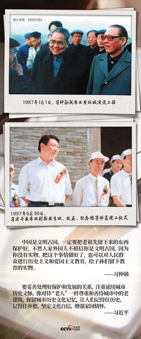“要像爱惜自己的生命一样保护好城市历史文化遗产”,从古城正定到榕城福州,再到首都北京……从保护一条巷、珍视一座城,再到谋划整个国,习近平与父亲一样始终高度重视文化的传承与发展,身体力行推动建设和保护的协调统一。