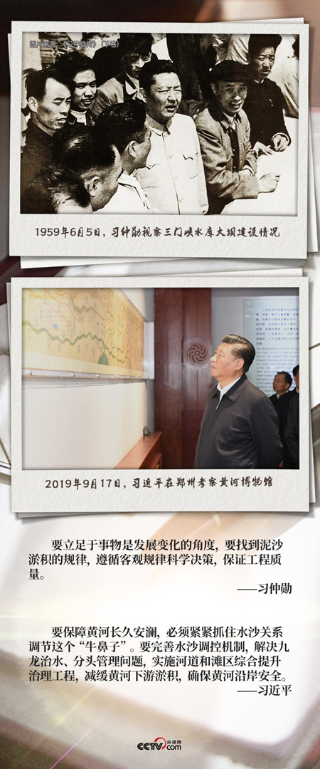 “治理黄河,重在保护,要在治理。”接过父辈的接力棒,习近平总书记致力于“推动黄河流域高质量发展,创作好新时代的黄河大合唱”。从2019年8月到2020年6月,在不到一年的时间里,他4次考察黄河,倾力推动黄河流域生态保护和高质量发展,为创作好新时代的黄河大合唱调“音”定“调”。