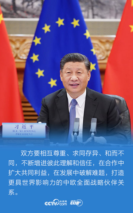 习近平主席指出,新冠肺炎疫情发生以来,中国和欧盟相互支持、相互帮助。中方愿同欧方携手努力,推动“后疫情时代”中欧关系更加稳健成熟,迈向更高水平。