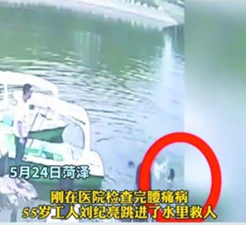 刘纪亮是曹县普连集甄庄行政村后刘庄村人,今年55岁。刘纪亮笑着说,年纪大了经常腰疼,这次是家人陪着来看病。“但是救人要紧,我觉得这就是本能吧,人性的本能。”