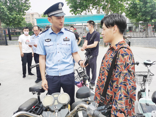 6月2日,济南历下公安局智远派出所举行集中发还被盗财物仪式,多辆被盗电动车于现场发还失主。其中有两辆电动自行车是警方利用车辆整车编码,通过电动车挂牌系统一路追查,顺藤摸瓜最终抓住了偷车嫌疑人。从车主报案、下落追查、锁定嫌疑人、寻到失车,本报记者随警作战一个多月追踪采访,揭秘“追查神器”助攻破案的背后故事。文/图山东商报·速豹新闻记者 张舒