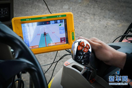 在哈尔滨双城区,拖拉机手使用自动操作设备进行机械化玉米播种作业(4月20日摄)。新华社记者 王松 摄