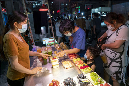 6月1日,市民在武汉保成路夜市消费休闲。新华社记者 熊琦 摄