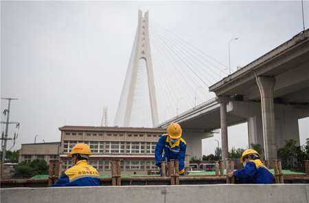 4月30日,来自中铁七局的建设者在武汉武九北综合管廊工程施工现场作业。新华社记者肖艺九摄