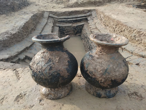 在分布有50余座墓葬的墓地中,有一定数量的墓葬为并穴合葬,并穴墓葬的填土中包含大量陶片和瓦片,邢琪推断,这在当时多起到防盗的作用,也有可能是当时的一种习俗。“随葬的器物很少,如果是为了防盗的话没有这种必要,但最终也起到了防盗的作用。”根据这些陶片、瓦片,邢琪推断墓地附近应有一处较大的制陶作坊,一方面烧造墓砖,另一方面也生产板瓦、筒瓦、陶罐、陶瓮、陶盆等日常实用器。遗憾的是,在发掘过程中并没有发现。