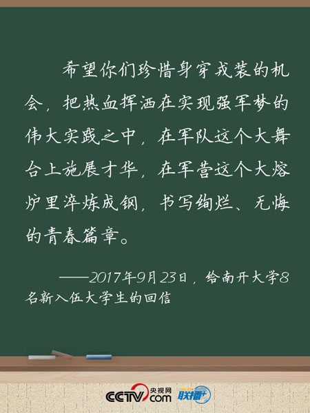 联播+ “同学们生逢其时、肩负重任。希望全国广大高校毕业生志存高远、脚踏实地,不畏艰难险阻,勇担时代使命,把个人的理想追求融入党和国家事业之中,为党、为祖国、为人民多作贡献。”