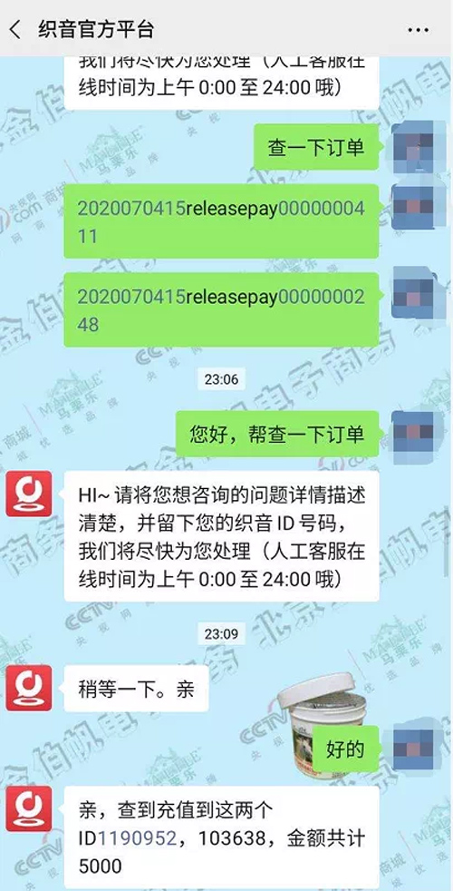 记者联系该公司客服并提供受害者“购买”织音币订单信息时,客服表示确实存在这笔订单,但购买的“织音币”已经通过打赏方式进入到某些主播账户。对于是否可以退回以及告知该收款账户人联系方式,客服方以“仅凭截图无法核实”为由拒绝退款,同时表示无法提供账户主播的联系方式。