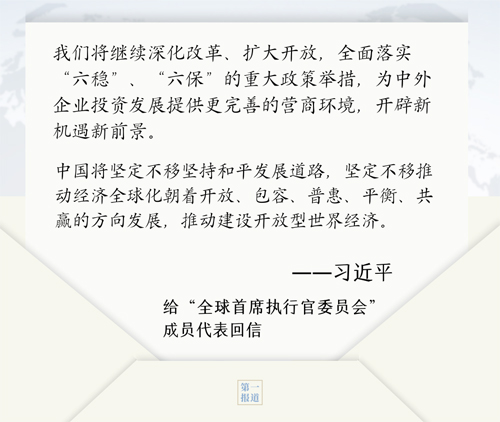 顺应合作共赢大势、走团结合作之路,中国始终身体力行。根据中国海关总署7月14日公布的最新数据,今年6月,中国进出口增速实现年内首次双“转正”。7月15日,在给由全球具有行业引领性和代表性的39家跨国公司组成的“全球首席执行官委员会”成员代表的回信中,习主席重申“继续深化改革、扩大开放”的中国承诺: