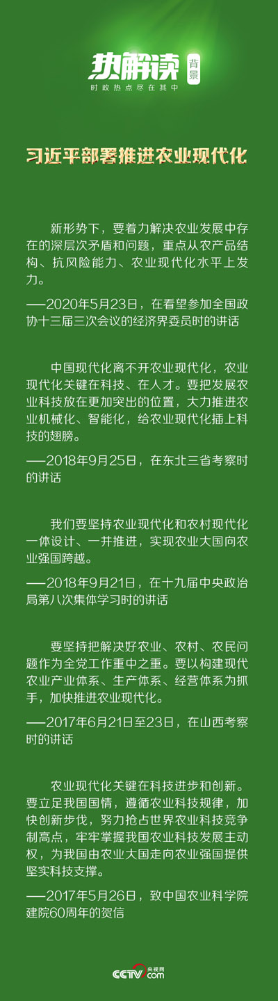 “我想这个目标也在实现中。‘金扁担’,我把它理解为农业现代化。”总书记说。