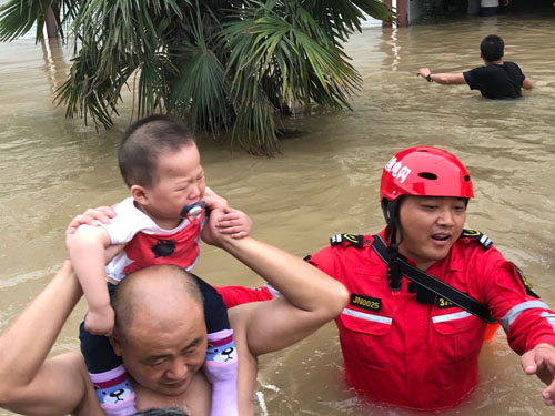 20日上午8点,队员们抵达固镇镇后,便第一时间投入到救援中。车进不去,队员们扛着两艘冲锋舟步行1公里才得以进入。之后所有看到冲锋舟的市民都在呼救,“镇上的人几乎都被困在二三楼,情绪很不稳定,我们只能是先救老人儿童妇女。”王佰立说,整个镇子面临着无水无电无信号的状况。