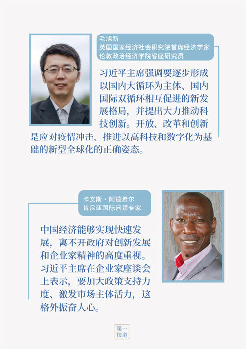“保护和激发市场主体活力”,“弘扬企业家精神”,“集中力量办好自己的事”……从中国领导人的一系列重要论述中,世界看到新时代中国持续深化改革、扩大开放的坚定决心,更读懂疫情压力下中国经济的强大韧性与蓬勃活力。