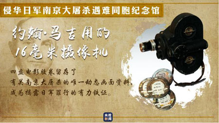 约翰·马吉用他的16毫米家用摄像机,借职务之便偷偷拍摄,记录下日寇的暴行。整整4盘胶卷,每一帧都是揭露日寇罪行的有力铁证,也是留存至今的有关南京大屠杀的唯一动态画面。