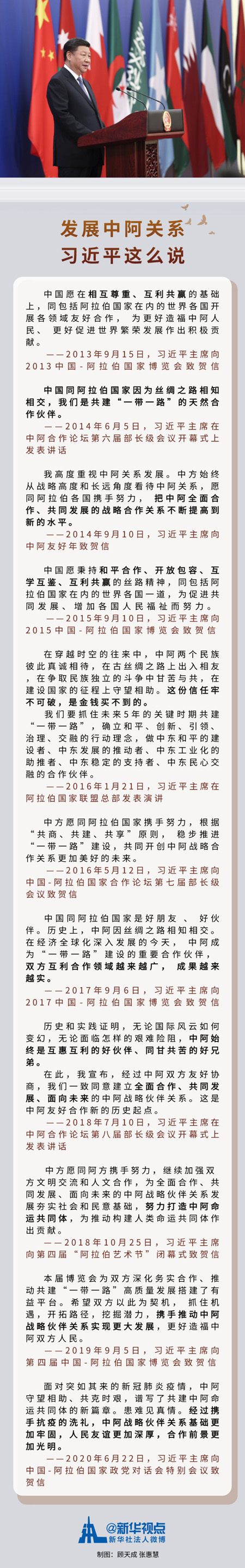 中阿传统友谊历久弥新,结合当前形势,习近平主席对中阿关系给予了高度评价: