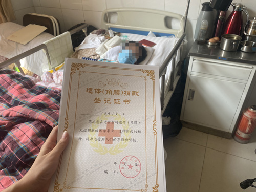 8月1日,济南市红十字会志愿者张镜宇来到周丽所在的医院,他带来了一份捐献承诺书,上面写道:“我自愿逝世后将遗体(角膜)无偿捐赠给医学教育、科研和临床使用,为祖国医学事业的发展贡献自己最后一份力量。”郑军看了一眼承诺书的内容,在执行人一栏填上了自己的信息,勾选了“角膜”和“遗体”,张镜宇说:“郑军没有犹豫,夫妻俩都已经想好了。”