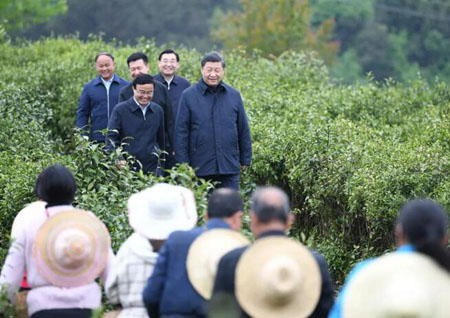 今年4月21日,在陕西考察的习近平来到平利县女娲凤凰茶业现代示范园区考察脱贫攻坚。一张照片定格了“五级书记”共抓扶贫的瞬间。