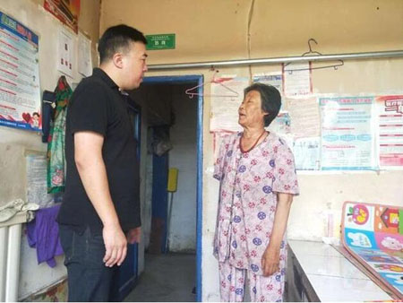 ▲吉林省农安县合隆镇烧锅岭村第一书记祁志刚看望贫困户谷凤英。