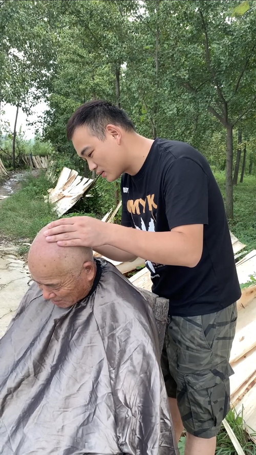 在村里看到老人后,大庆就上去表明来意。一开始,老人并不接受大庆的“好意”,还有人把他当做“骗子”。“我说可以免费给他们理发,但是他们不相信,可能是我表达方式不对,再者因为都没有见到过,大家不知道我是干嘛的。”