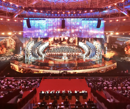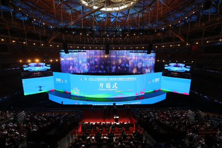 商报济南消息 9月16日下午,2020山东省旅游发展大会暨首届中国国际文化旅游博览会在济南奥体中心东荷体育馆隆重开幕。大会以“文旅融合发展,乐享好客山东”为主题,来自38个国家和地区的友好宾朋,跨越空间阻隔,相约线上交流,共同推动山东文化和旅游业发展谱写新的篇章。