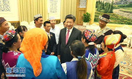 2015年9月,在中华人民共和国成立66周年之际,习近平特别邀请来自内蒙古、广西、西藏、宁夏、新疆5个自治区的13名基层民族团结优秀代表,来到北京参加国庆活动。习近平说,中央这么重视民族工作,这么重视脱贫工作,就是要更好维护民族地区团结稳定,更好加快民族地区发展,更好凝聚各民族智慧和力量,各民族一起来实现中华民族伟大复兴的中国梦。