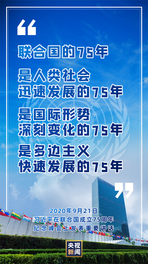 9月21日,国家主席习近平在联合国成立75周年纪念峰会上发表重要讲话。
