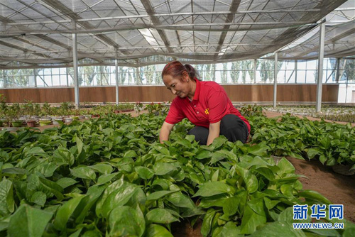 9月21日,在新疆喀什地区疏附县托克扎克镇阿亚格曼干村,村民在由中国电信集团投资建设的花卉基地里劳作。 新华社记者 赵戈 摄