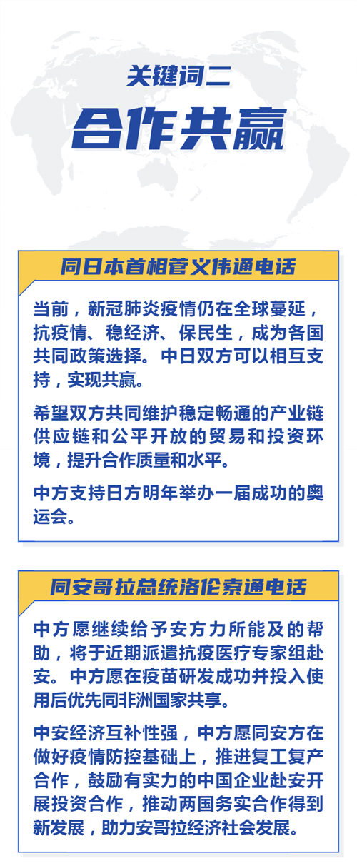 据新华社9月25日电,习近平主席当晚分别同日本首相菅义伟、安哥拉总统洛伦索通电话。