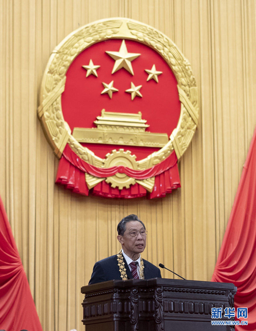 “由衷感谢党和国家把这份荣誉授予我们4位医务工作者,这是党和国家对全体医疗卫生工作人员的充分肯定。”钟南山代表国家勋章和国家荣誉称号获得者发言,“欣逢盛世当不负盛世。面对尊崇和荣誉,我们将始终牢记党和人民的重托!”