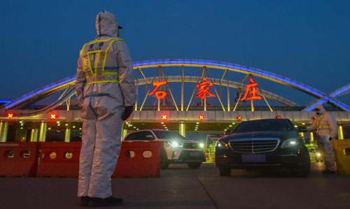 1月6日晚,石家庄市裕华高速口,执勤民警在逐一排查入市区车辆 据《河北日报》