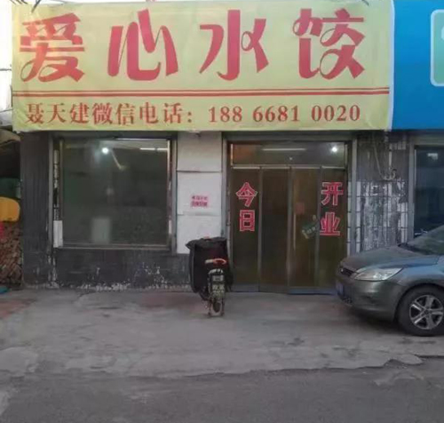 聂天建算是爱心水饺店的老板。但起初他都不知道房东帮他开了这样一个店。