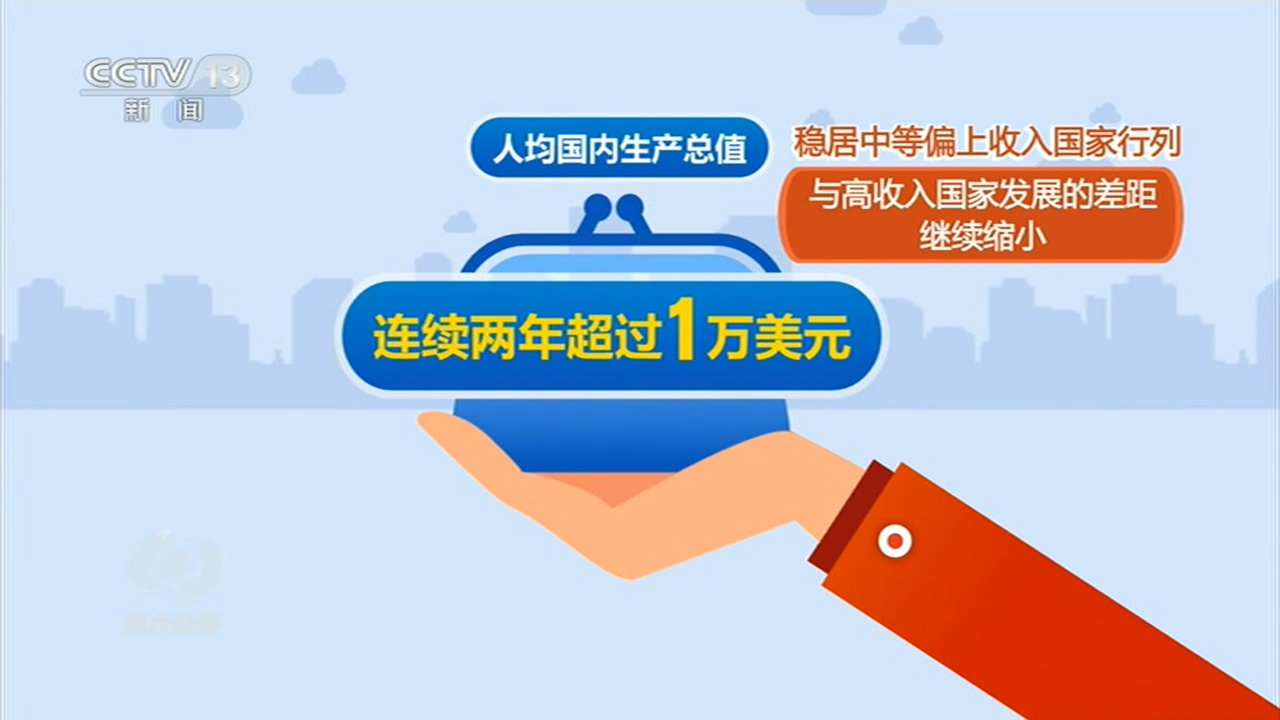 初步核算,2020年,国内生产总值1015986亿元,首次突破100万亿元。按可比价格计算,比上年增长2.3%。人均国内生产总值连续两年超过1万美元,稳居中等偏上收入国家行列,与高收入国家发展的差距继续缩小。