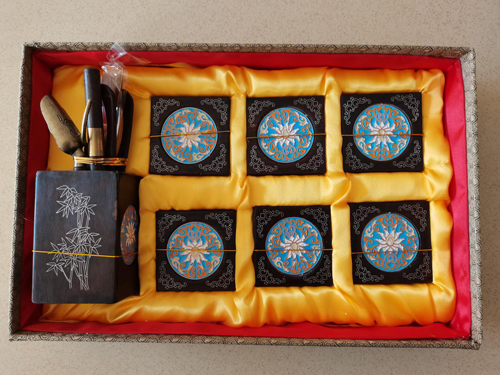 值得一提的是,以故宫博物院馆藏木器文物为灵感而设计的鸢都红木嵌银系列作品在此次文化和旅游商品创新设计大赛中获得银奖。孙凯告诉记者,获奖作品为紫檀木嵌银丝茶具套装,材料为紫檀木,保留了嵌银髹漆技艺传统技法,同时在造型和使用价值方面进行创新。