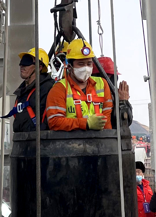 障碍物不断清理,吊盘不断下降,1月20日上午,据技术专家组成员、山东金建设计工程有限公司总经理马吉祥介绍,双层吊盘已经到达距井口350米处的堵点,20日早上10点左右开始对该段发起“总攻”。