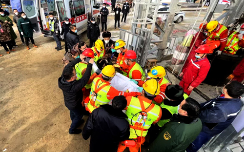 1月24日15时18分许,山东栖霞爆炸金矿事故救援现场,随着最后一批2名被困矿工升井,在“5中段”发现的10名幸存被困矿工全部升井。当日上午,救援人员在“4中段”新发现一名被困矿工,他随后被升井并送往医院。