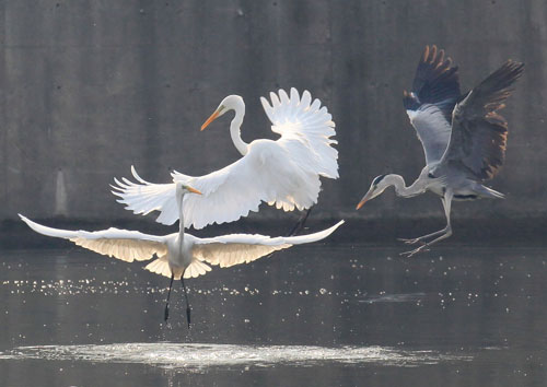 济南动物园野生动物保护技术人员郭爱霞介绍,白鹭、苍鹭属于涉禽类,具备三长,嘴长、颈长、腿长的特点,适合在有水域的地方生活,靠捕捉水中的小鱼小虾为食。它们捕食的时候与水禽类不同,不在水中游泳,而是站在水边某一处地方,在那里静静地站着,看到鱼之后一下子就插入水中,捕食完立刻起来。平时在岸边站着等着捕食,不捕食的情况下就栖息在水边高大的树枝上,晚上也夜宿在高大的树枝上。