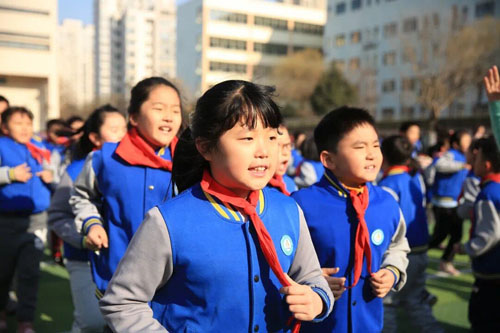 育秀小学的老师们鼓励学生每天坚持至少一次运动