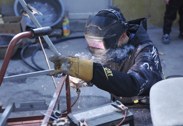 制作成功后,亓祥硕骑着它在村里转了一圈,引来众多村民围观。记者看到,这辆车有多项关键设计属于独创。比如,油箱是用废旧灭火器改装的,车上的每一个部件、每一处焊接、每一点改进,都是亓祥硕独立完成的。“切割这个铁架子,左脚差点被切割机锯了,幸好穿的鞋比较厚。焊接时,火花经常溅到手上,有一次还溅到额头上,把头发烧掉了一块。从那以后,我就更加小心,买了劳保鞋和防护手套、眼镜等,保证操作安全。”亓祥硕说。