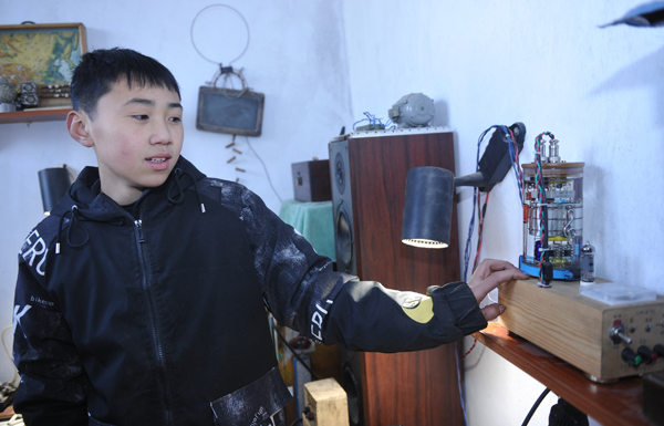 东西越买越多,农家院里和房间里都堆不下了,于是,吴增希专门腾出了家里两间库房,亓祥硕自己重新打扫粉刷,成了专属操作间。每天放学回家写完作业,亓祥硕就一头扎进自己的小天地里开始各种“鼓捣”。“一般我不允许其他人进来,一是考虑安全问题,这里连着各种线路,还有化学试剂,容易受伤,二是不想被打扰。”亓祥硕说。