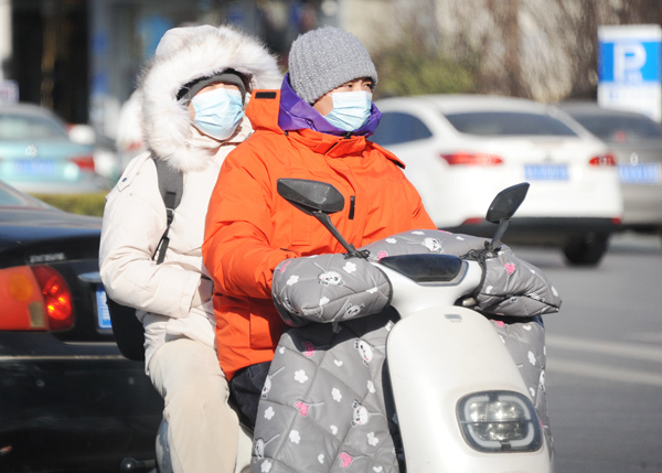 昨日,寒潮抵济,省城市区最低气温达到-18℃,出行的市民几乎都把家里最保暖的衣帽,组合搭配穿在身上,抵御寒潮。记者 王晓峰 摄