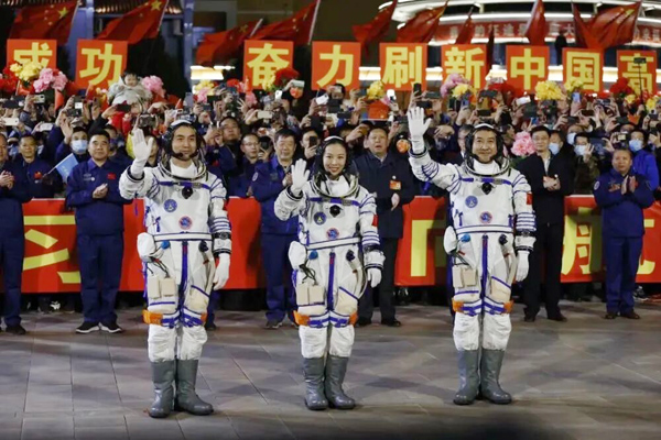 10月15日晚,神舟十三号载人飞行任务航天员乘组出征仪式,在酒泉卫星发射中心问天阁广场举行。