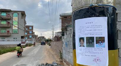 案发乡镇道路旁贴有欧某中的通缉令