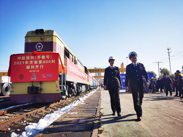 11月9日上午,伴随着响彻云霄的火车汽笛声,一辆满载货物的中欧班列(齐鲁号)从济南(国储)铁路国际场站发出,开往乌兹别克斯坦的塔什干,标志着济南中欧班列(齐鲁号)今年开行数量突破600列,提前近两个月完成全年任务目标,居全省第一,全国前列。